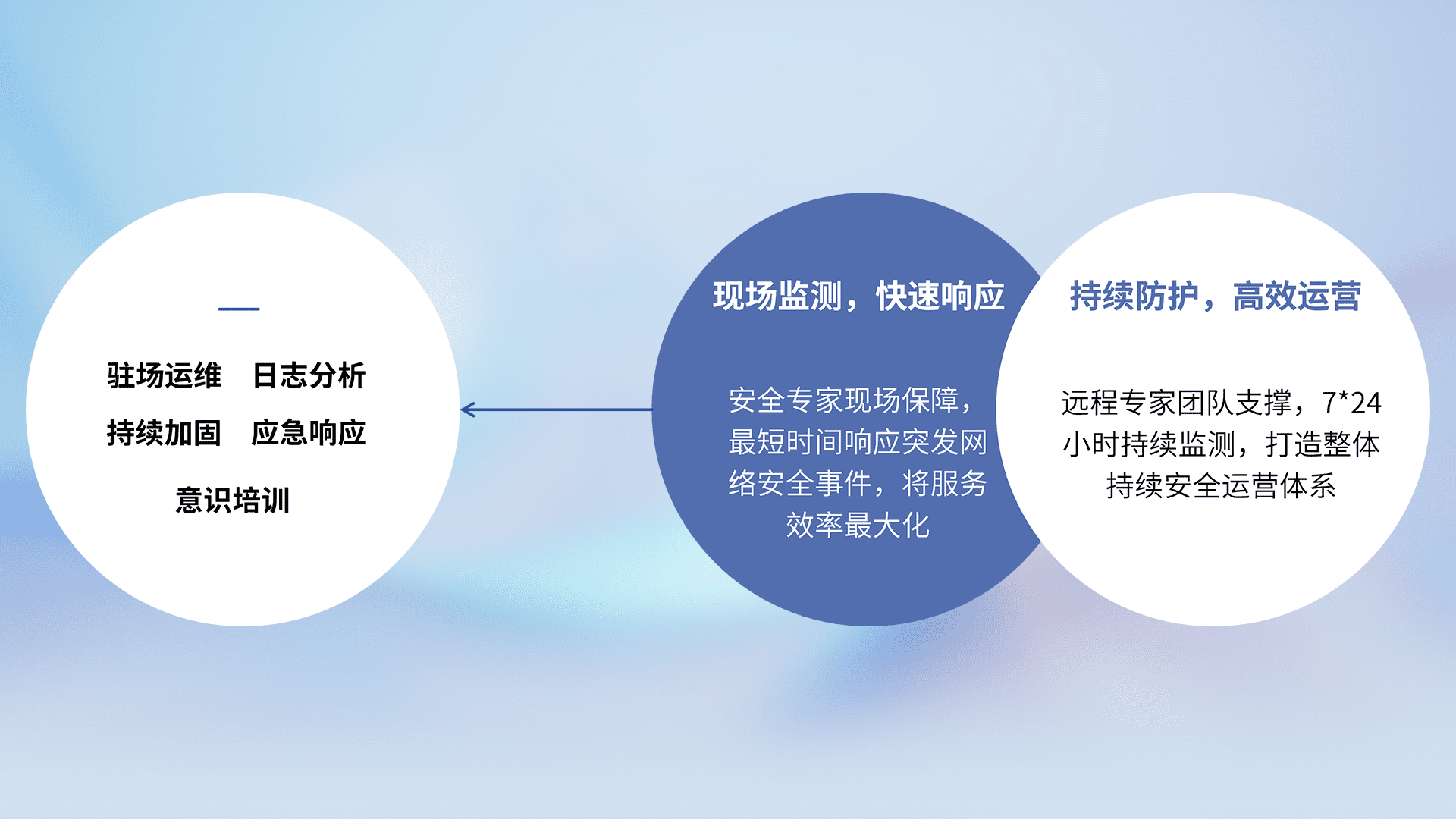 针对客户行业特性,,,,提供专属的一站式安全管理服务,,,帮助客户全面感知网络空间威胁,,,通过安全专家的线上、、线下防护支持,,,,实现风险闭环,,,,将安全保障常态化,,为客户打造常态化安全运维运营服务。。。。